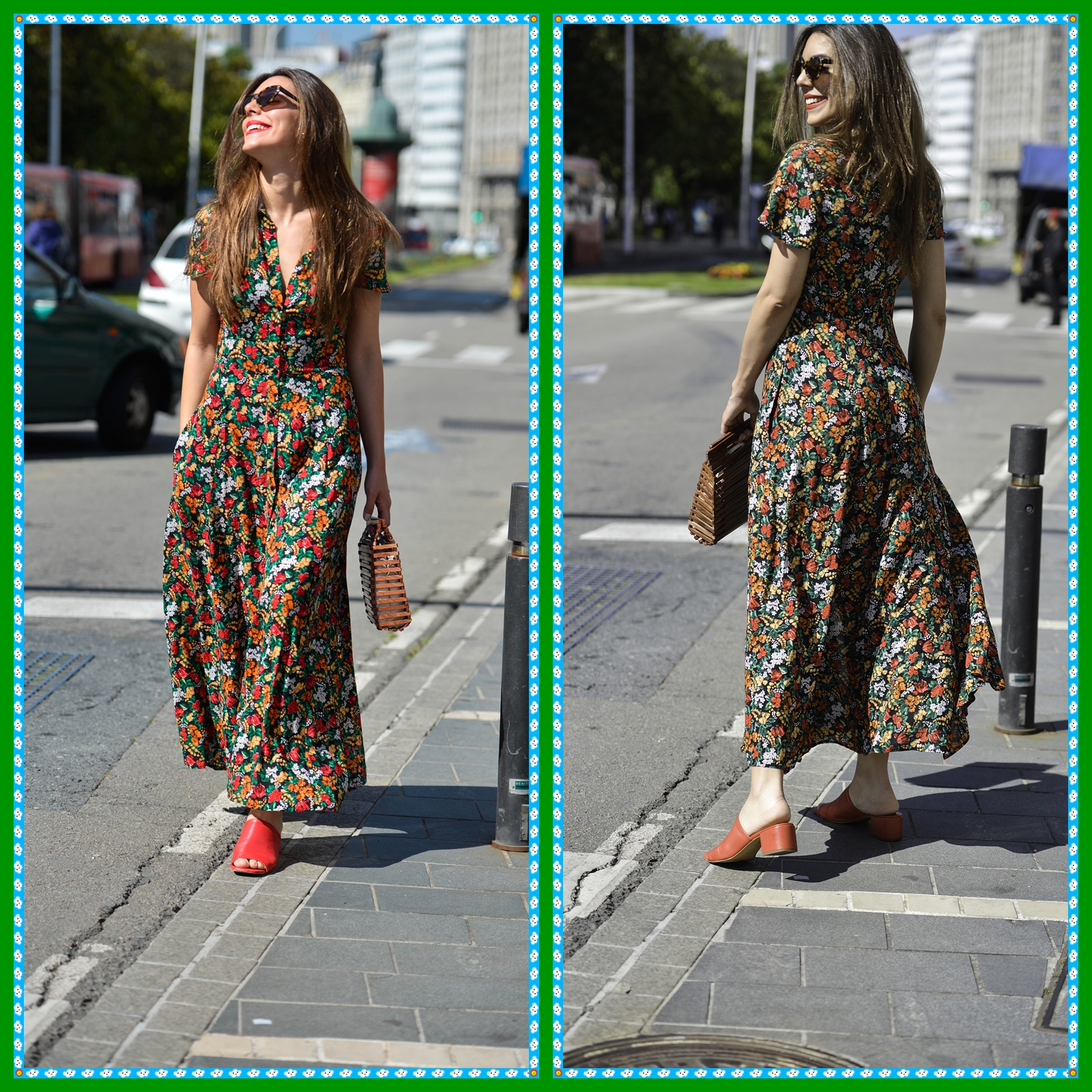 Dois look perfeitos com vestido floral, super feminino, de domingo de outono, da espanhola Carla Estevez, o 1ª curto, mas não mini e rasteiro, o 2º maxi, mas compensando com abertura frontal, tipo fenda, e calçando mule com salto bloco. O Blogue dela é o http://www.thefashionthroughmyeyes.com/