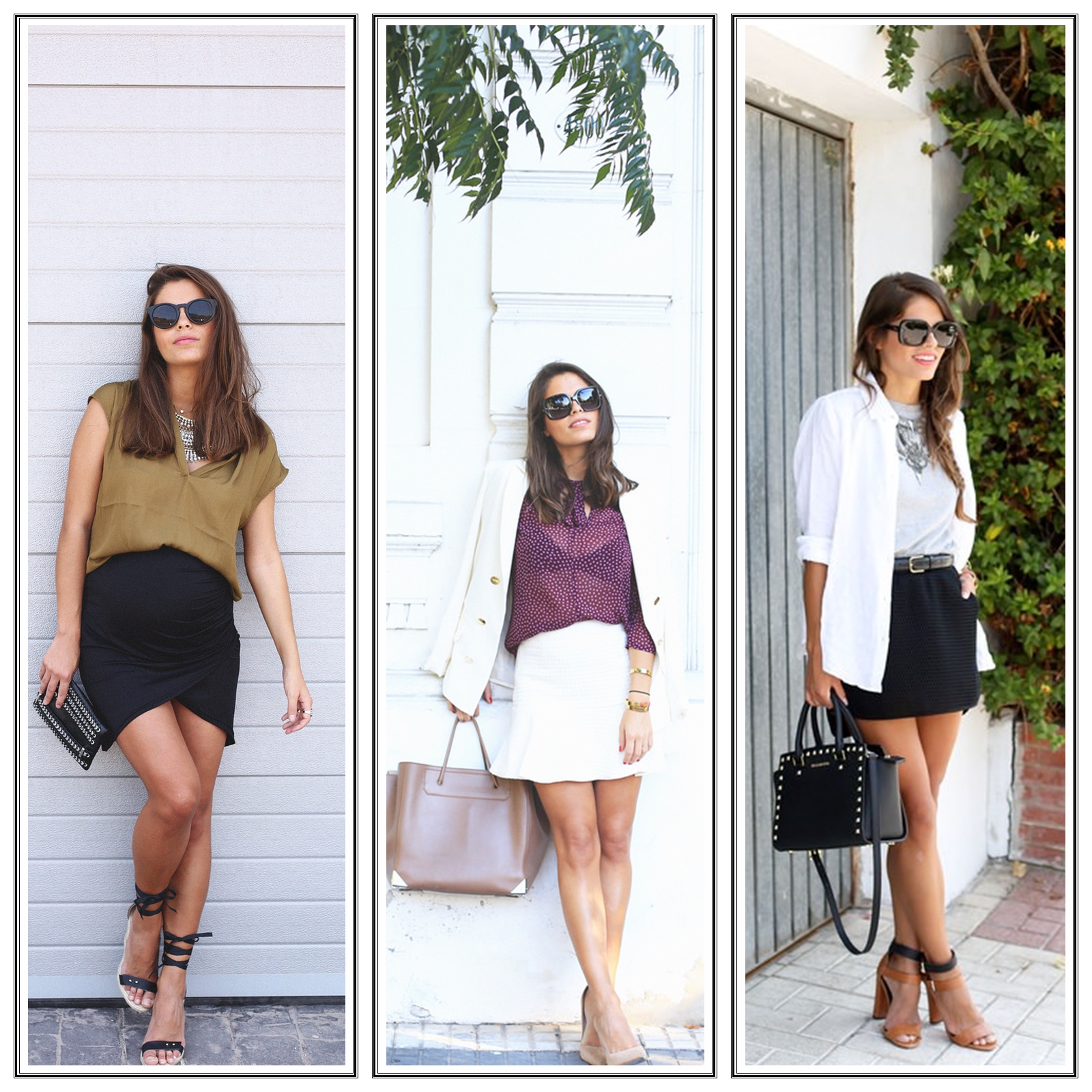 Os três looks para escritório e business,todos com saia midi, têm inspiração da espanhola Jessie Chanes do blogue http://seamsforadesire.com